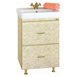 Тумба с раковиной Misty Гранд Lux 60 золотая кожа флораль, 2 ящика